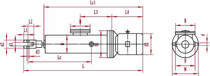 DYTZ型整體直式電液推桿外形尺寸及安裝尺寸
